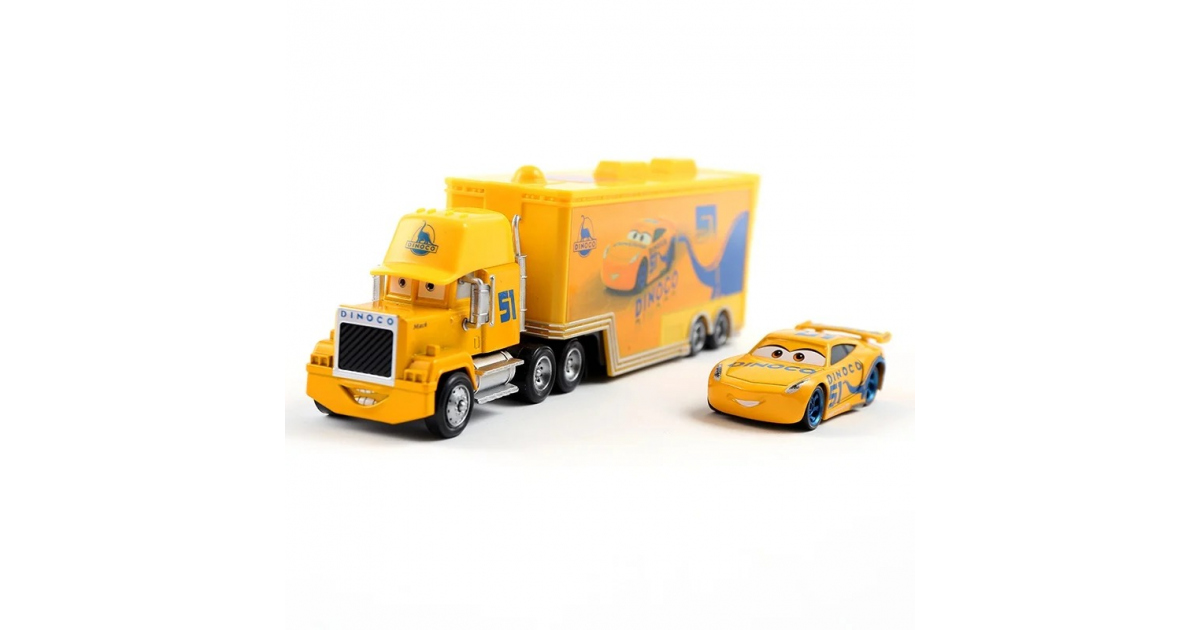 ¡El camión Mack lleva a Lightning McQueen Dinoco #51 a la victoria en el mundo de Cars! Perfecto para fans de Disney Pixar, ¡horas de diversión aseguradas!