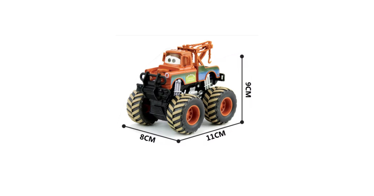Este camión monstruo captura la esencia juguetona de Mate con su grúa giratoria, bumpers resistentes y diseño robusto listo para la acción.