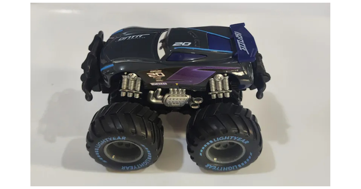 Impresionante monster truck de Cars 3 con número 20, listo para dominar cualquier pista con su función pull-back y rebote dinámico.